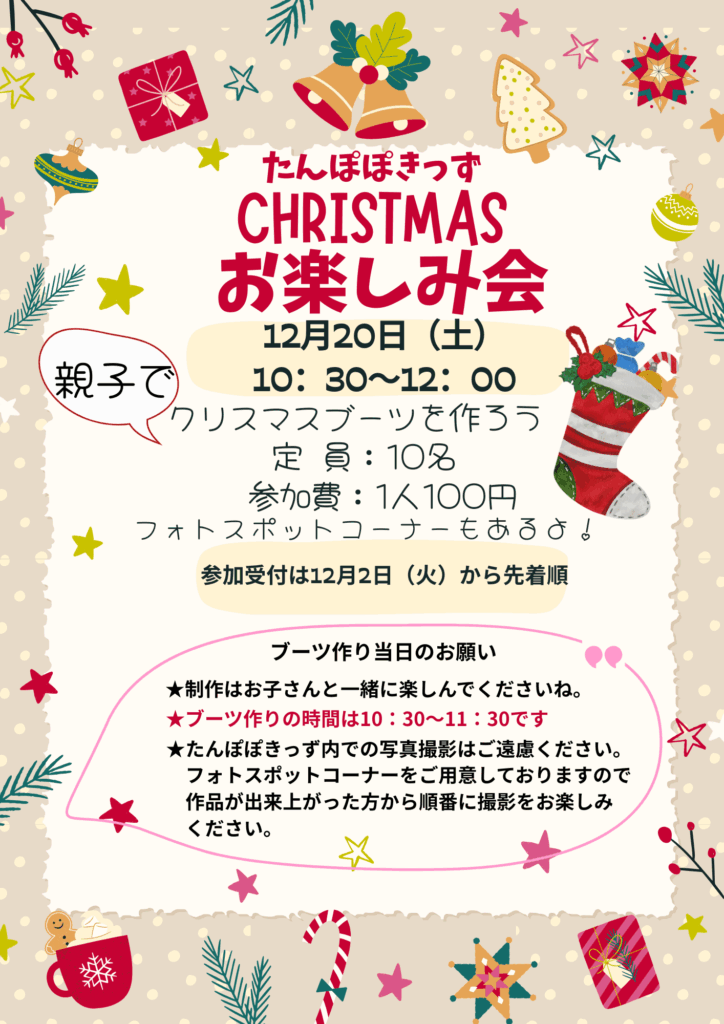 たんぽぽきっずクリスマスお楽しみ会のご案内(残りわずか)