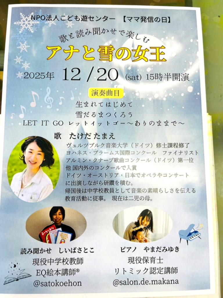 ママ発信の日(歌と読み聞かせで楽しむアナと雪の女王)のご案内